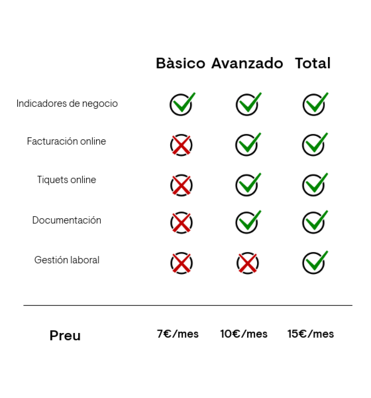 Entendemos que cada negocio es único y tiene diferentes necesidades. Por ello, junto con la herramienta de facturación Kabiku, ofrecemos distintas tarifas diseñadas para adaptarse a la variedad de requisitos de tu empresa. Estas son las tarifas de cada plan: